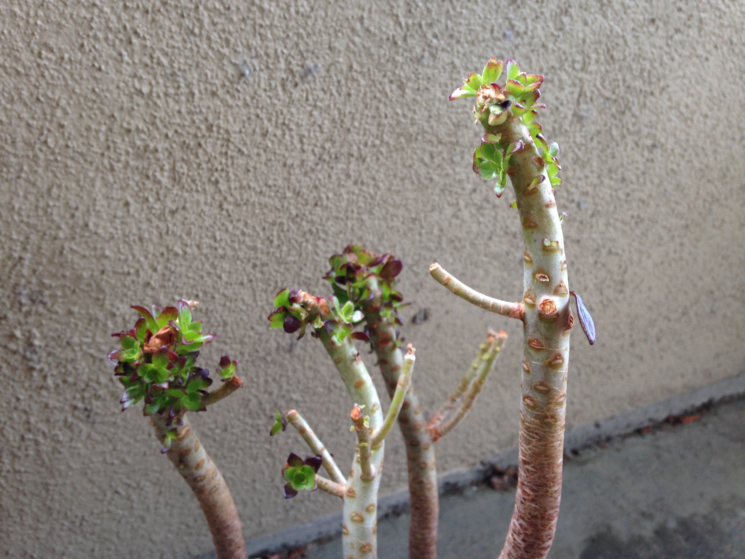 This succulent's first leaves wilted off because it didn't adjust to the cold quickly enough. it is now sprouting..